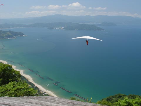神崎の海岸に向かって飛び降りるスカイスポーツの拠点のようです。